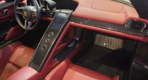 The original owner of this 918 clearly had impeccable taste as the interior has been adorned in red leather across the seats, door panels and dashboard while carbon fiber is found on almost every other element. Inside and out, this 918 is special, seriously special.