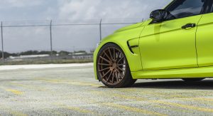 The wrap that adorns the car is dubbed Satin Lime Green Chrome and just as the name suggests, it has a satin finish yet shimmers under the sun in a way that most satin and matte finishes simply can’t replicate. It’s certainly not to everyone’s taste but there’s no doubt that it makes the performance sedan unique.