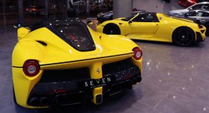 That dealership is the Seven Car Lounge – located not in Dubai or Abu Dhabi, but the nearby Saudi Arabian capital city of Riyadh. On hand it has a 1992 Ferrari F40 (with 7,581 miles on the clock), a ’96 F50 (8,016 miles), and a 2004 Enzo (only 280 miles) – all in red – plus a rare yellow 2015 LaFerrari, just for good measure. All that’s missing is a 288 GTO.
