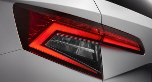 The latest embodiment of Skoda’s current design theme, the Karoq will feature the brand’s signature grille, flanked by (optional) LED headlights, with (standard) LED taillights around back – all with “crystalline” elements evocative of Czech glassware and sharply angled to make the model stand out in an already crowded segment.