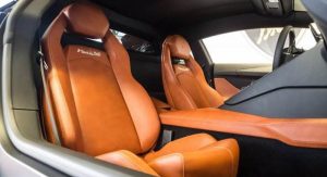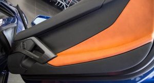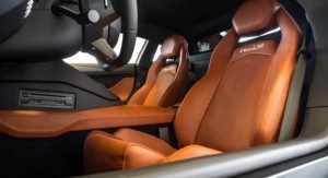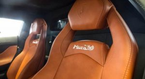 Distinguished by a deep blue and silver paintjob with an adobe and black leather interior, it takes a rather different approach than the red and gold, black and gold, or bright green and silver examples we’ve seen to date. Perhaps more Bugatti in approach than Lamborghini, but we dig it.