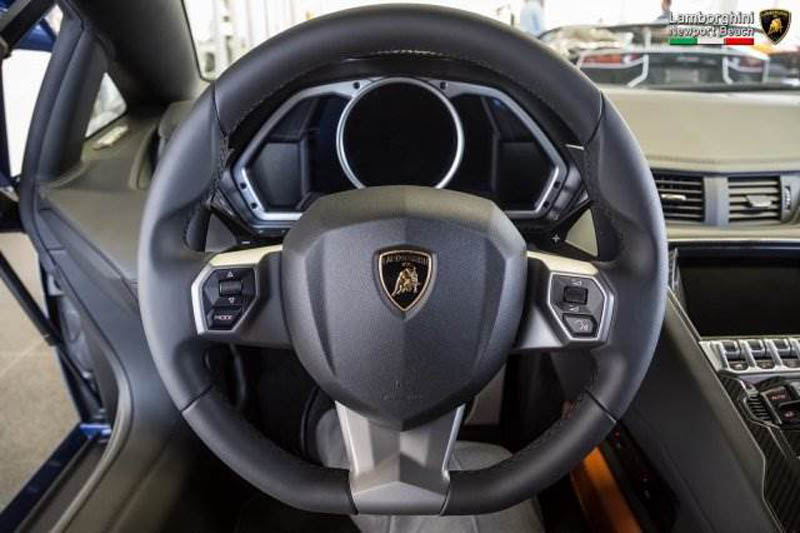 Distinguished by a deep blue and silver paintjob with an adobe and black leather interior, it takes a rather different approach than the red and gold, black and gold, or bright green and silver examples we’ve seen to date. Perhaps more Bugatti in approach than Lamborghini, but we dig it.