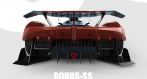 The front fascia of the car is seriously menacing to look at but it is perhaps the rear that is the most in-your-face. The upper segment of the rear bumper juts out and is then connected to a pair of aero elements directly behind the rear wheels. Other cool touches include a triangular-shaped rain light and exhausts that exit right behind the cockpit.