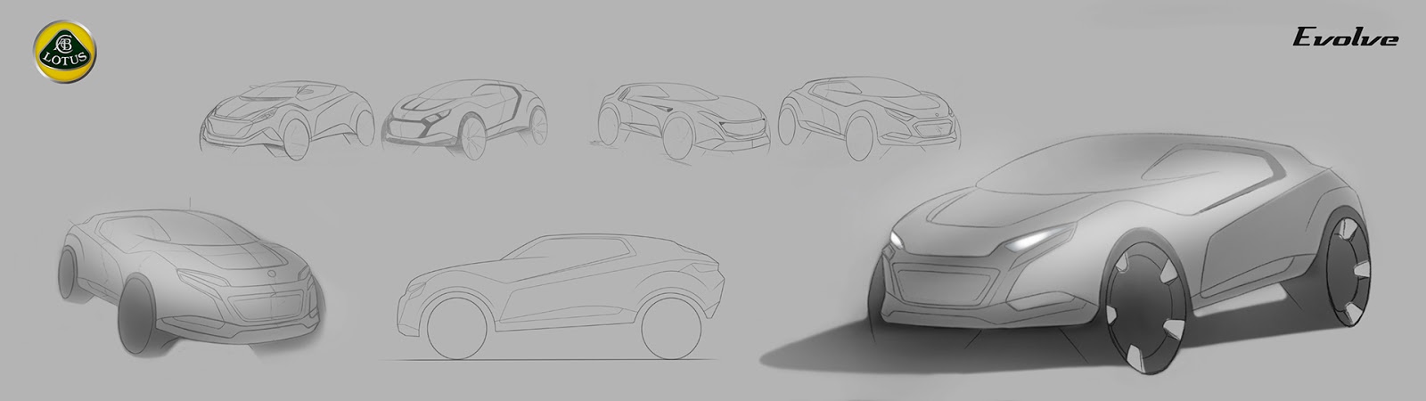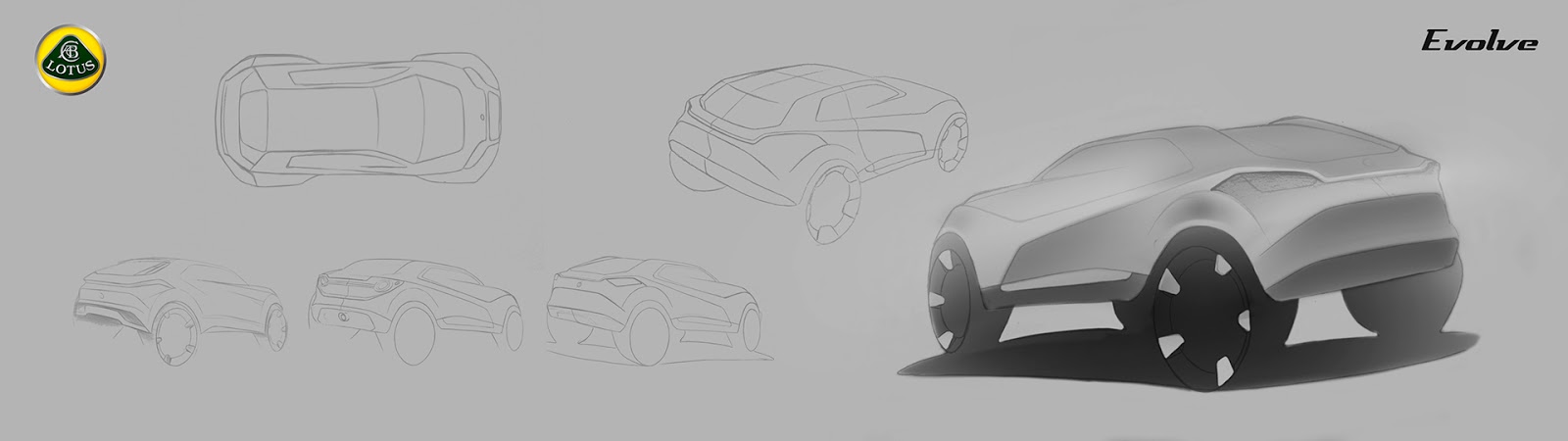 Looking beyond the windshield and side windows which have been painted over, the rest of the so-called Lotus ‘Evolve’ adopts an aggressive shape that is angled steeply towards a relatively low-front end. Character lines on the doors stretch up from above the front wheel arches, past the small side windows and through to the B-pillars.