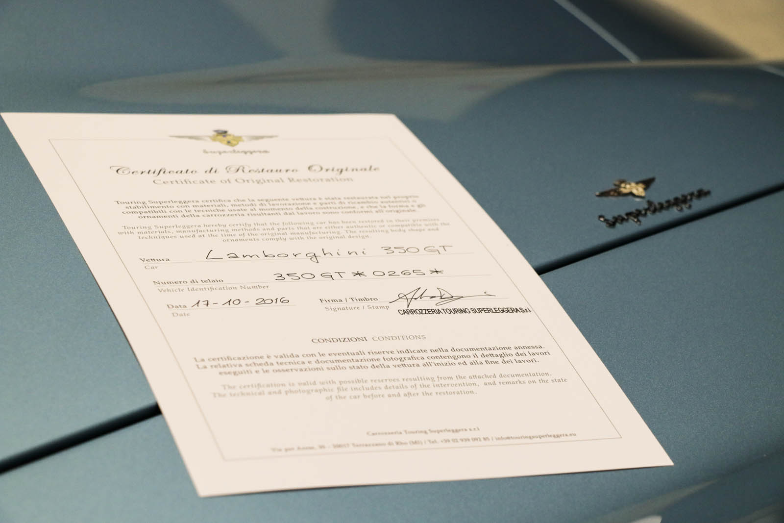 This one was later sold to an American owner whose plans to transform it were thankfully aborted. Upon the current owner’s discovery of the #265’s history, he sent it back to Carrozzeria Touring Superleggera in Milan – which had originally designed and crafted the 350 GT’s bodywork – for a full restoration.