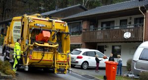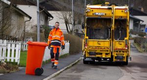 When the garbage truck is making its first pickup, the waste management employee exits the cab, collects the garbage can, and empties it as usual. The employee then hits a button on the truck, signaling it to travel to the next stop.