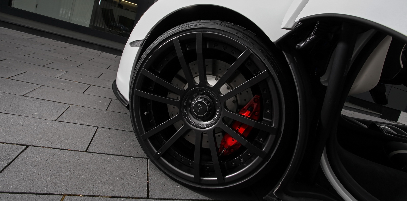 Enhancing its appearance are the 20-inch front and 21-inch rear F.I.W.E. handmade ultralight forged wheels, wrapped in 235/30 and 295/30 ContiSportContact 6 tires, respectively, which the tuner describes as being “nicer and wider” than the standard rims.