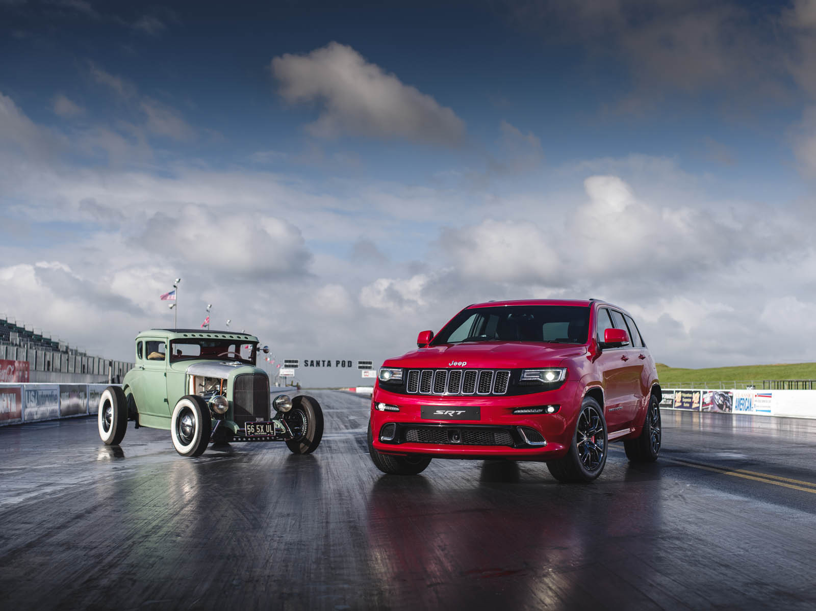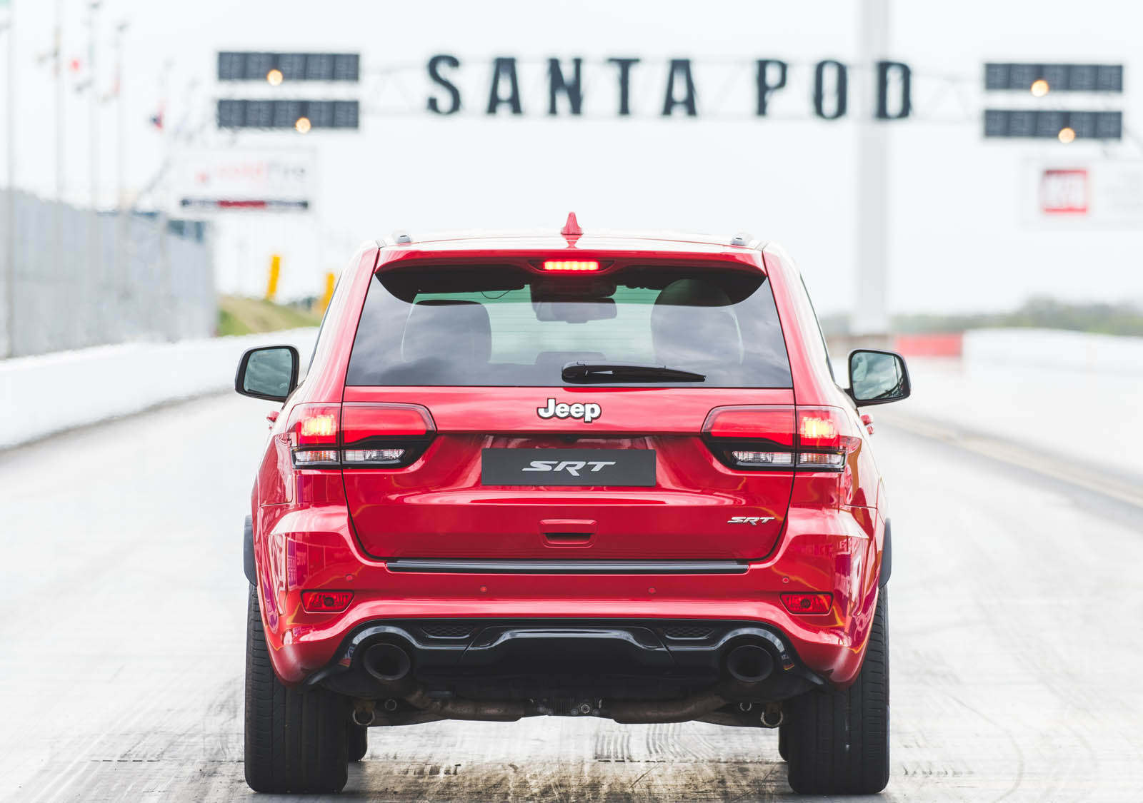 In the other lane is a new Jeep Grand Cherokee – not the new Trackhawk model with the supercharged Hellcat engine, but the “standard” SRT model with its 6.4-liter V8. It’s substantially more potent at 468 hp, but that muscle has to move more machine, with five seats, a whole lot of cargo space, and all the trimmings. Then again, the four-wheel drive only helps it get the power down to the tarmac.