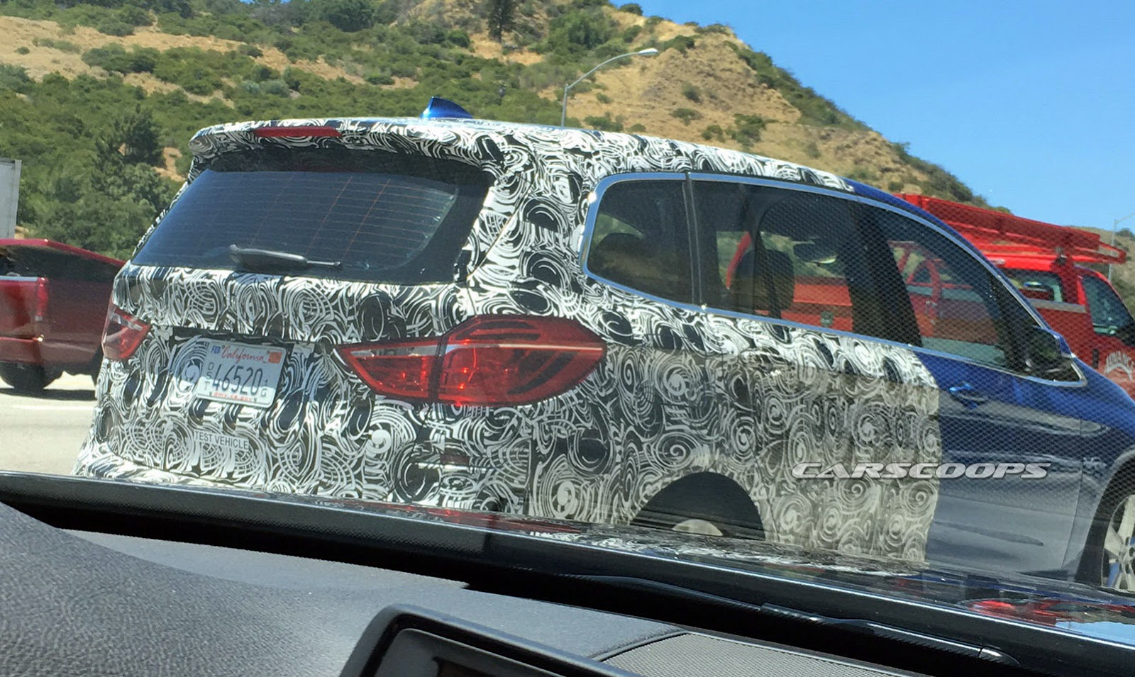 So what, pray tell, is this one doing on the highway in California? That’s what our reader Josh wondered, and after sending us these photos he snapped, that’s what we’re wondering, too.