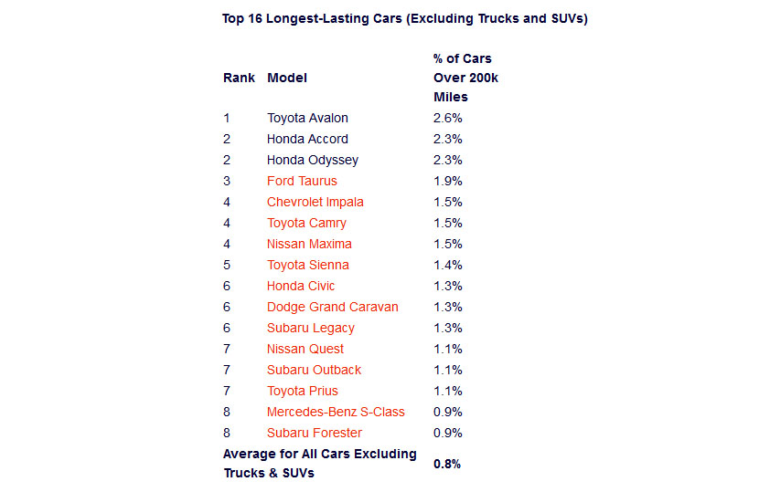 Regardless, iSeeCars CEO Phong Ly claims: “While any vehicle on today’s market has the potential to travel 200,000 miles with proper maintenance and care, our list of longest-lasting vehicles shows that certain vehicles don’t just have the potential—they do last well past 200,000 miles far more frequently than other models.”