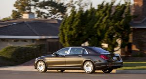 Channeled to the rear wheels through a seven-speed automatic transmission, all that muscle is said to be enough to shuffle the big sedan to 60 in just 4.6 seconds. That’s 0.4 seconds slower than the S65 sedan that shares the same engine, platform, and just about everything else, but stretching as it does 215 inches on a 132.5-inch wheelbase, the Maybach is longer by nearly a foot.