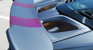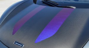 For starters, the mid-engine supercar has been painted in Flintgrau Metallic, a shade derived from the Mercedes-Benz palette. The car then features satin carbon fiber on the side skirts, hood, rear bumper, diffuser and front splitter and perhaps of most interest, a pair of Cerberus Pearl racing stripes on the hood, roof and airbrake.
