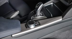 Inside, this car’s got Night Blue leather on the seats, door panels and armrest, while carbon fiber can be found on the center console, grab handles and on the upper dashboard, surrounding the air vents.