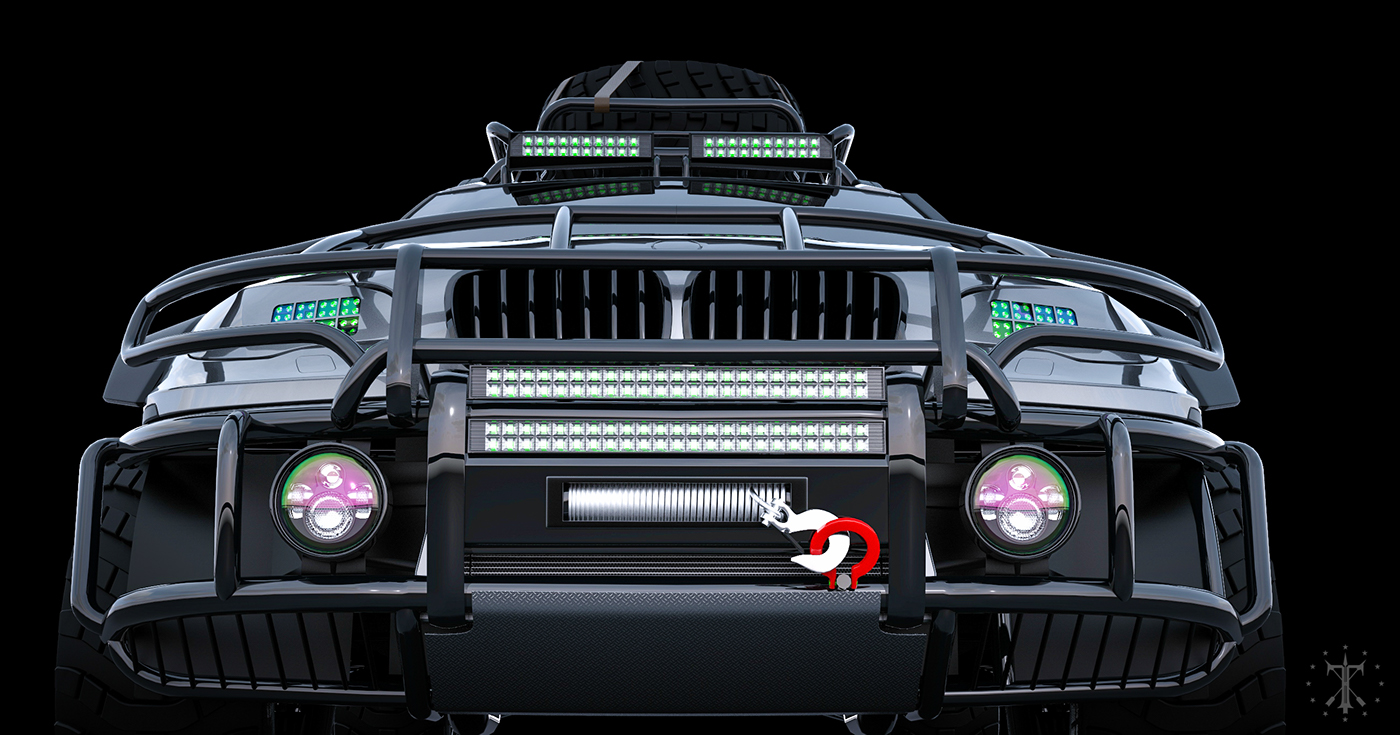 Taking a closer look at the vehicle reveals additional LED lights under the grille and on the roof, aftermarket headlamps, new fog lamps, a winch that could come in handy during those sticky situations, and even a snorkel.