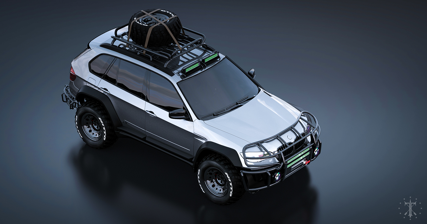 However, enthusiasts such as Kasim Tlibekov, who posted these renderings on Behance, wouldn’t say no to a highly modified BMW X5 from the E70 generation, which sports a raised suspension, plastic cladding all around, large bull bars on both ends, and bulky tires.