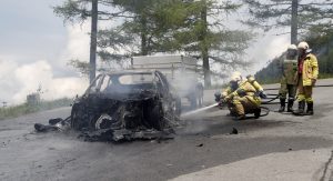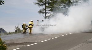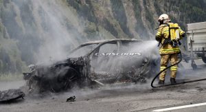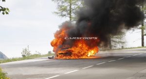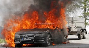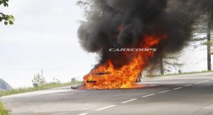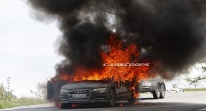 Once the flames were spotted, Audi’s engineers pulled over and managed to get all of their things out of the car in time. A roadside service employee tried to put the fire out with a handheld extinguisher but this wasn’t enough to stop the flames from devouring the prototype.