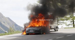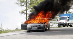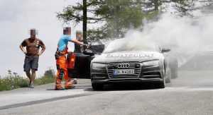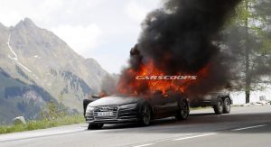 Audi’s engineers were testing a prototype of the 2019 A7 in the Austrian Alps, when suddenly the car caught fire in front of our spy’s camera.