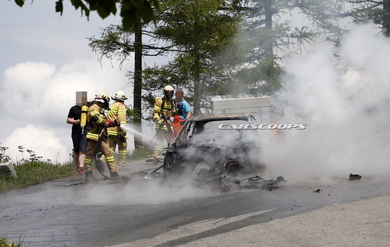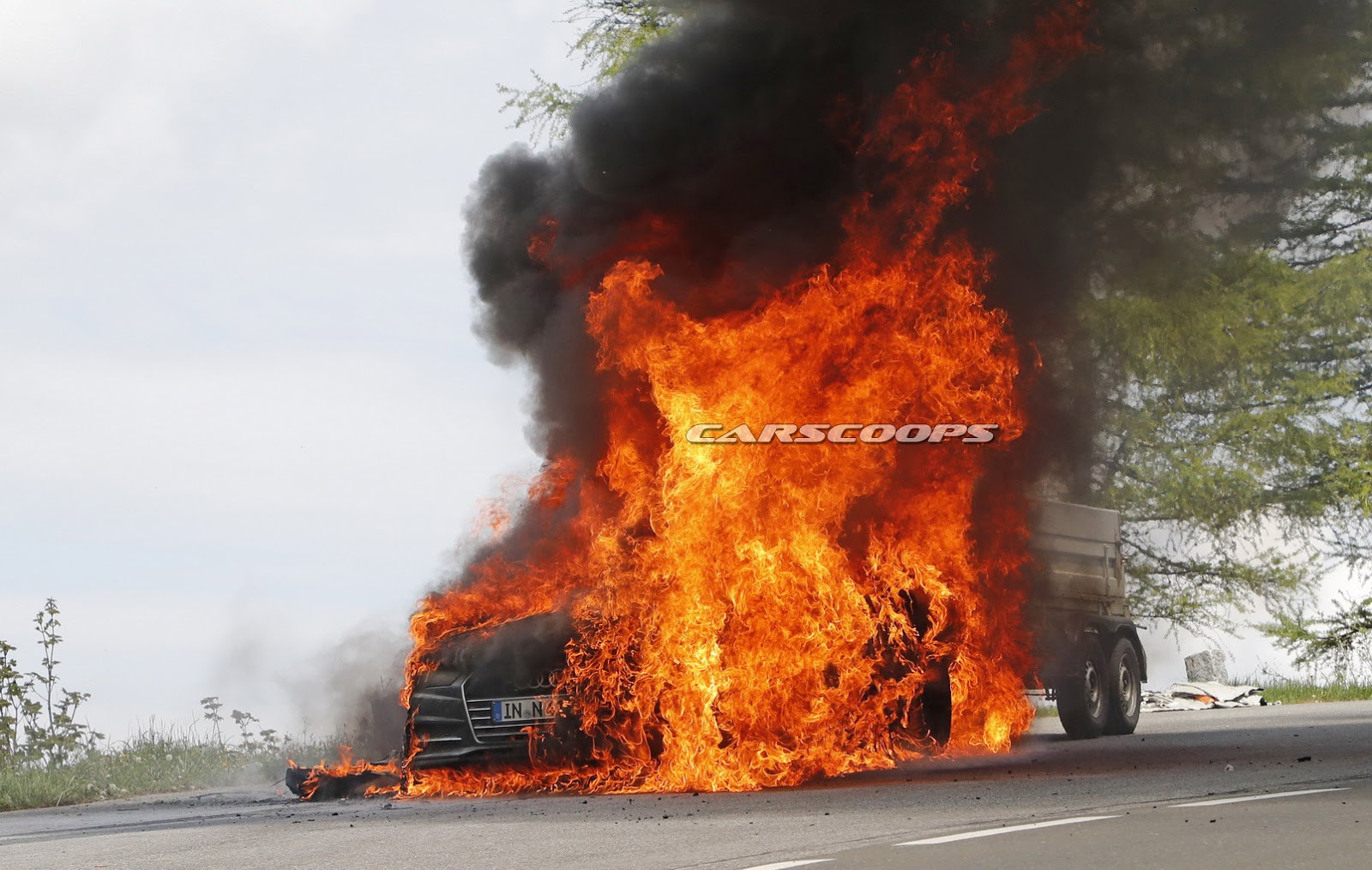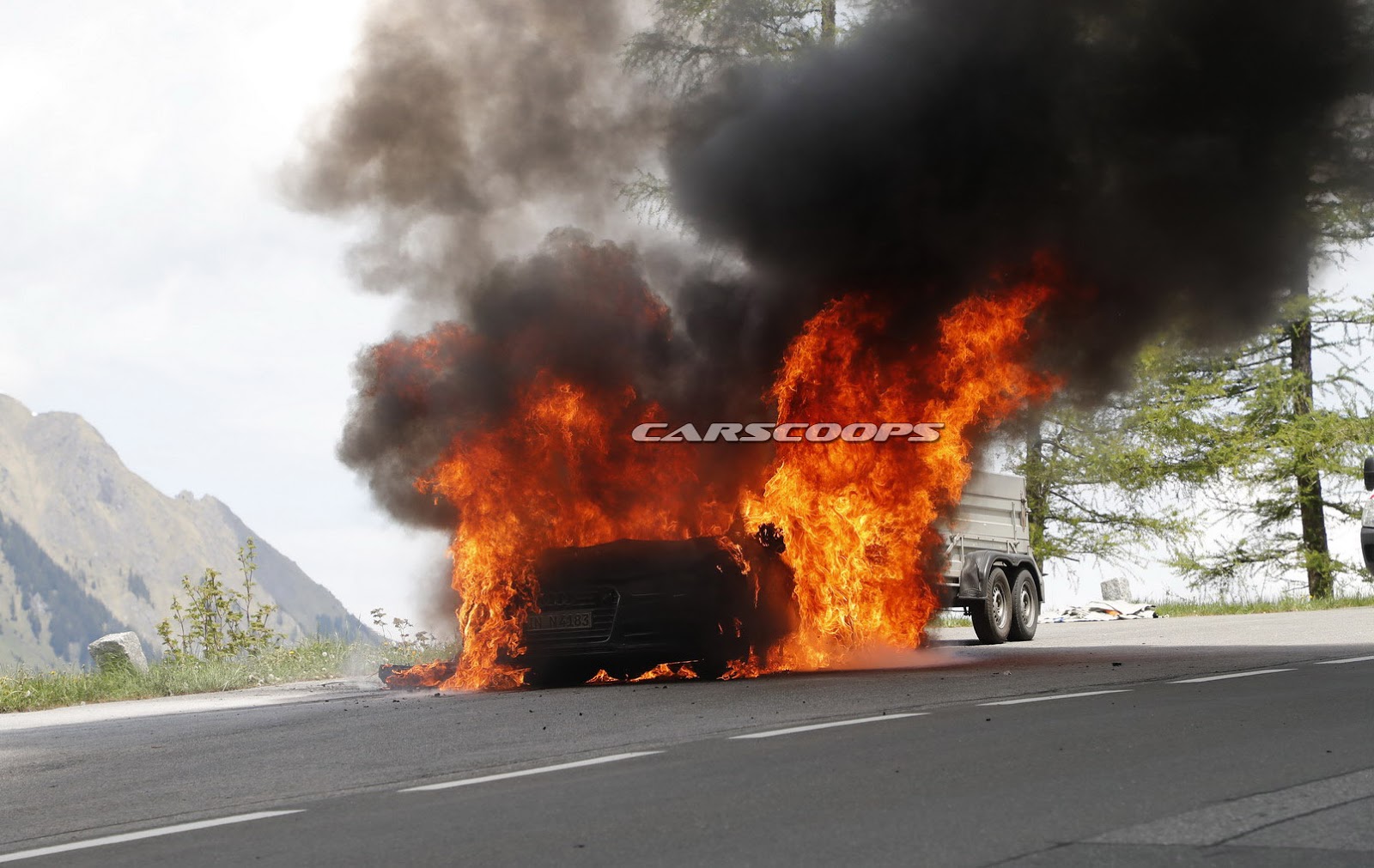 Once the flames were spotted, Audi’s engineers pulled over and managed to get all of their things out of the car in time. A roadside service employee tried to put the fire out with a handheld extinguisher but this wasn’t enough to stop the flames from devouring the prototype.