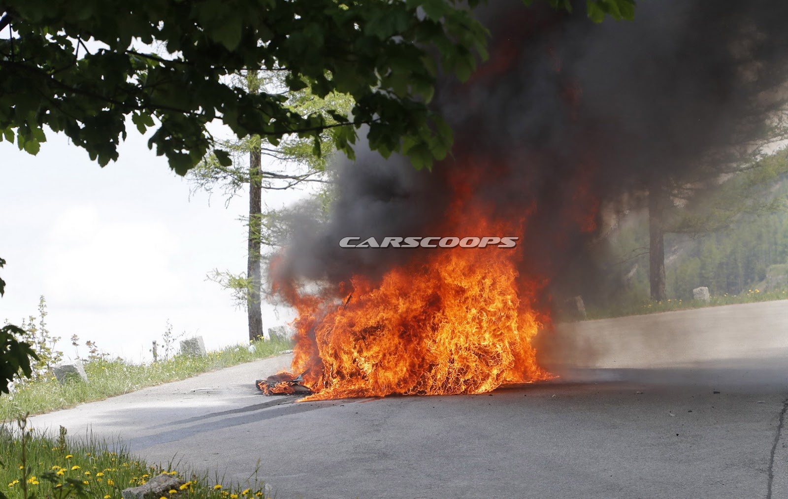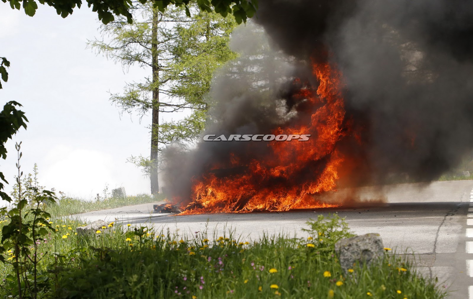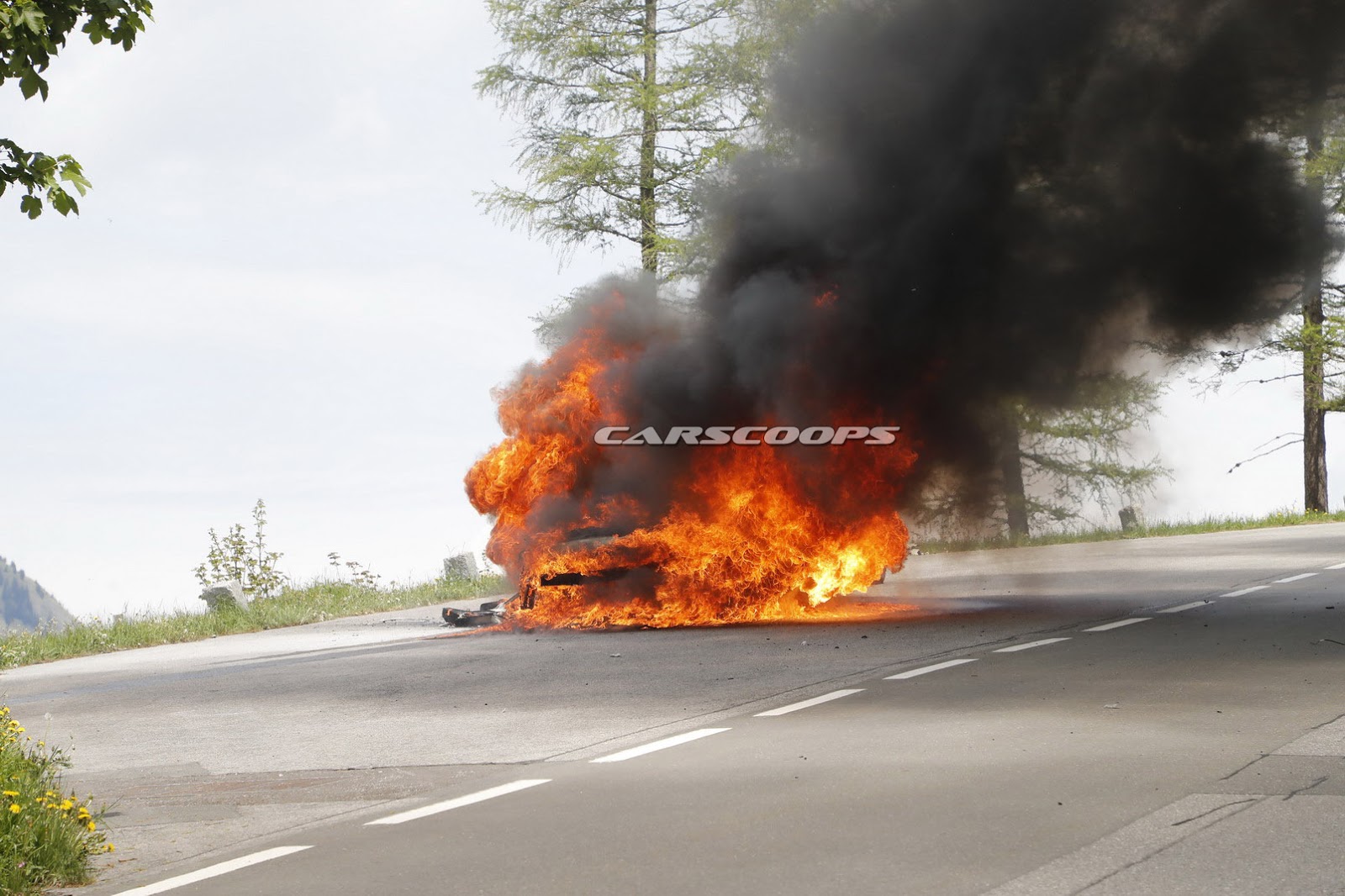 Once the flames were spotted, Audi’s engineers pulled over and managed to get all of their things out of the car in time. A roadside service employee tried to put the fire out with a handheld extinguisher but this wasn’t enough to stop the flames from devouring the prototype.