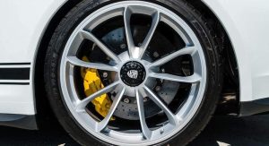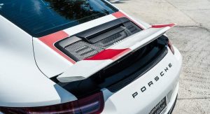 The ‘R’ badge adorns the body of the 991.1 generation 911 with stripes and parts made from magnesium and carbon fiber. It carries a 4.0-liter flat-six naturally aspirated engine, mated to a 6-speed stick shift, that makes 500PS (493hp) and 460Nm (339lb-ft) of torque, helping it reach 100km/h (62mph) in 3.8sec from standstill, before topping out at 323km/h (201mph).