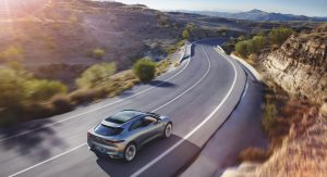 Underpinned by a dedicated electric platform, the Jaguar I-Pace is expected to pack 400 horses and 516 pound-feet (700Nm) of torque, which should allow it to reach 60mph (96km/h) in some 4 seconds. Its 90kWh lithium-ion battery pack is believed to provide it with a total driving range of 220 miles (350+ km).
