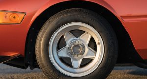 Finished in Rame Metallizzato, this car came with a beige leather interior with nero seat inserts, Borani wire wheels and Borletti air-conditioning, with Harrah ordering Francisco Mir’s Service Center in Santa Monica to put competition-style nine-inch rear wheels and fender flares, as well as upgrade the engine.