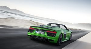 Tipping the scales at 1,587kg (3,499lbs), or 25kg (55lbs) less than the regular R8 Spyder, this German supercar needs just 3.3 seconds to reach 100km/h (62mph) from a standstill, and it will keep going up to 328km/h (204mph). This represents a 0.3sec and 10km/h (6mph) improvement over the lesser variant.