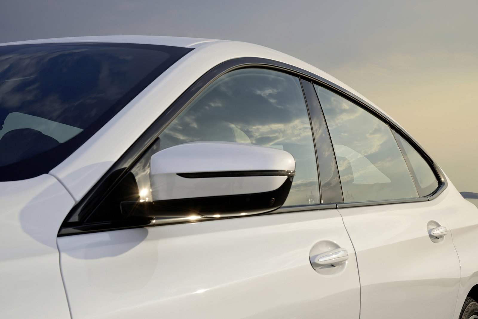 Besides the new dimensions, the car has been equipped with a larger grille that is flanked by standard LED headlights. Other highlights include frameless windows, front fender vents, and wraparound taillights with three-dimensional styling elements.