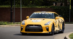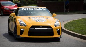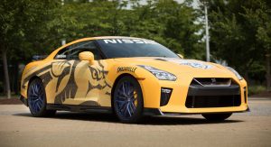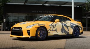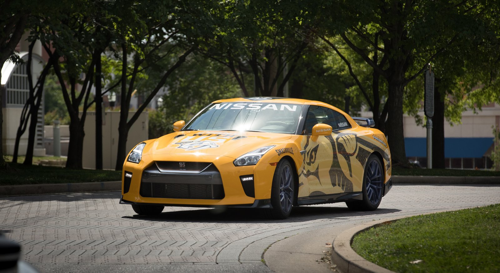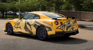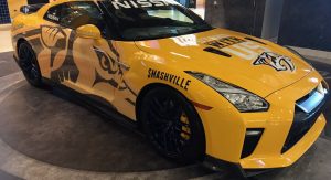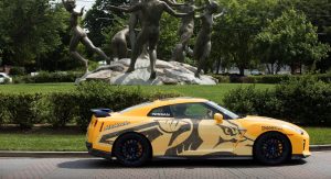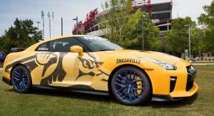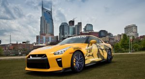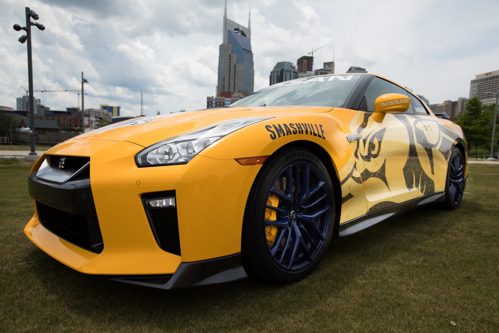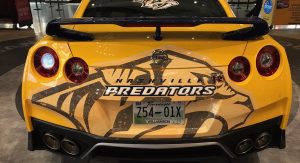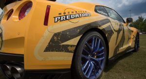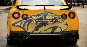 Based on the $109,990 GT-R Premium, the model has been dubbed the “Predzilla” and it features a custom yellow exterior with Nashville Predators graphics. The car also has blue wheels, a blue rear spoiler, and plenty of Nissan badging.
