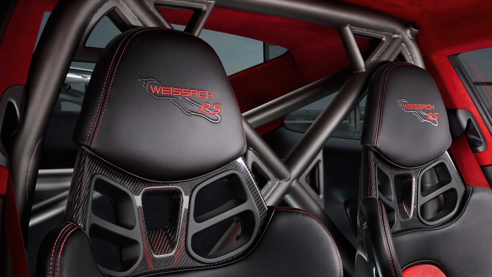 Just like the exterior, the inside is also rather special. The example pictured is bathed in red and black alcantara and leather elements and also includes a comprehensive rollcage behind the seats. Other distinctive touches include an outline of the Weissach track on the headrests and a ‘Weissach RS’ badge on the dashboard.