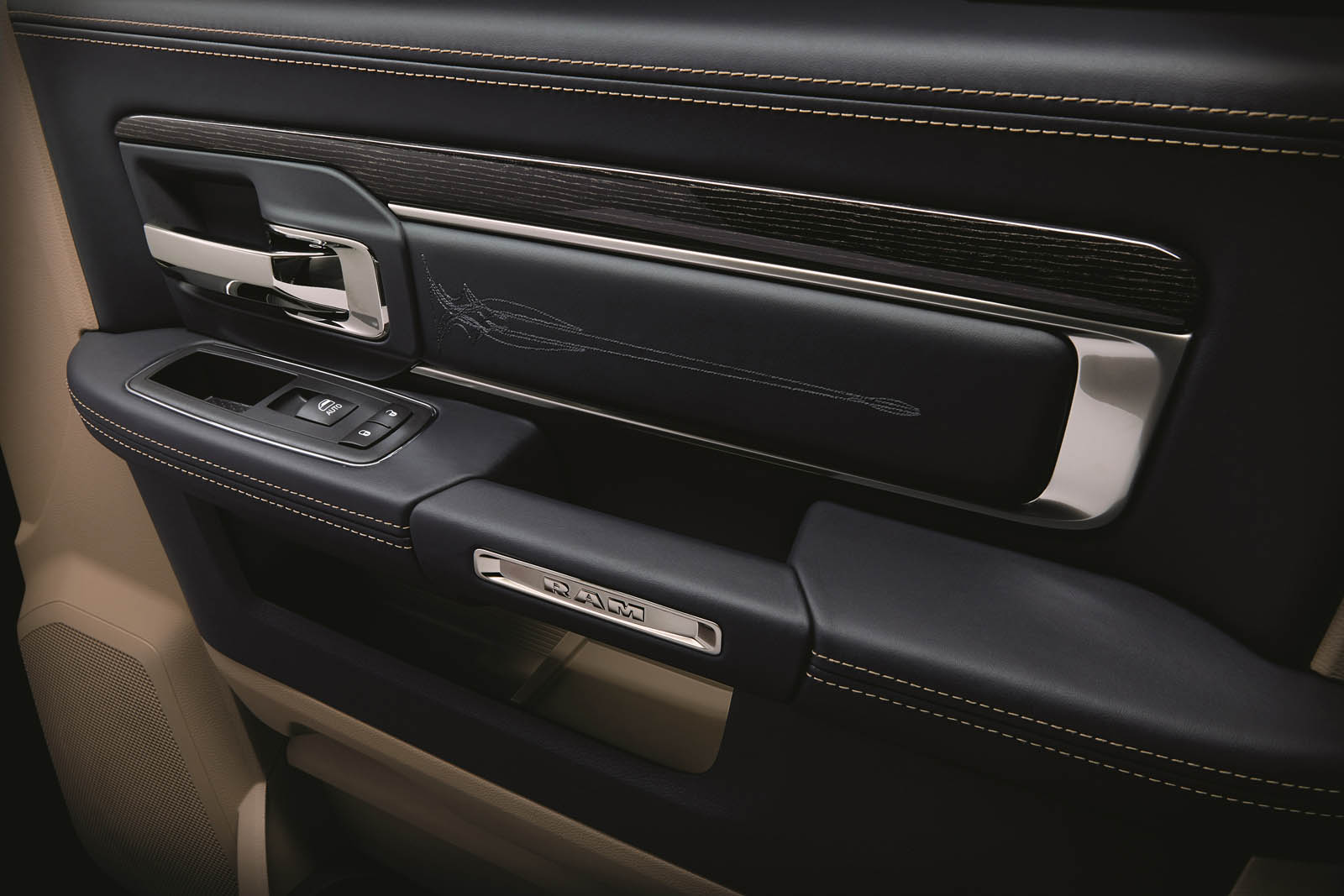 It’s inside the cab where the luxury treatment really stands out, though. Ram has upholstered the interior of the Tungsten Edition with special two-tone leather, unique carpeting, real wood trim, and in an industry first, a suede headliner that you won’t find in other pickups.