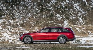 Compared to the standard Estate, the All-Terrain sits 39mm higher, featuring a ground clearance of up to 156mm. Mercedes’ 4Matic all-wheel drive splits the torque between front and rear at 31:69.