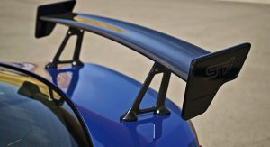The latest teaser image doesn’t reveal much but it shows the car will be equipped with lightweight STI-branded wheels that are wrapped in Michelin Pilot Sport rubber. We can also see a Brembo braking system with red calipers and what appears to be a ground effects package.