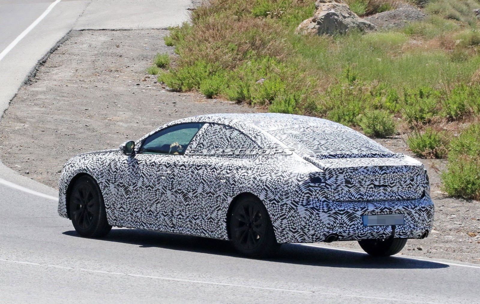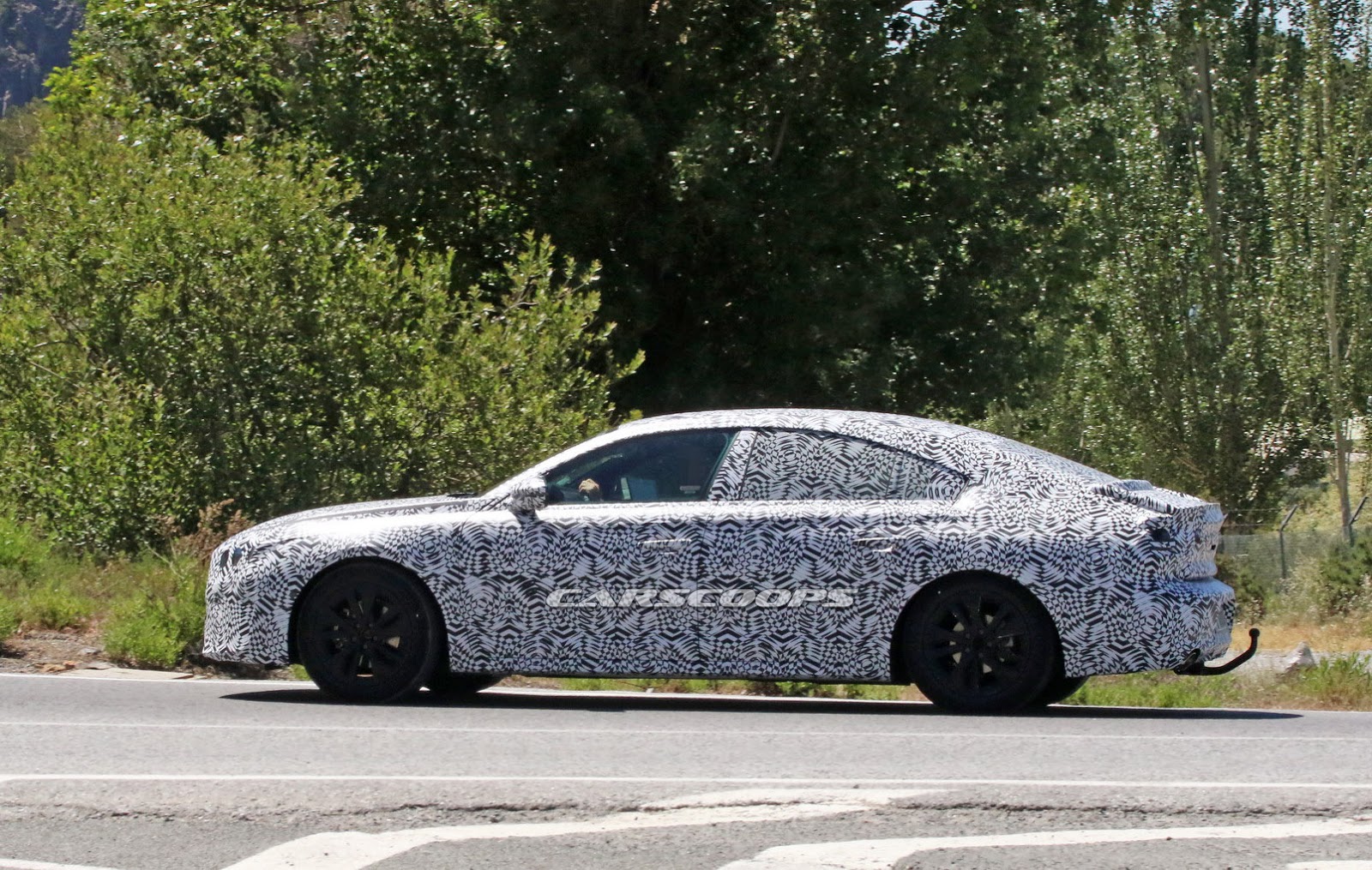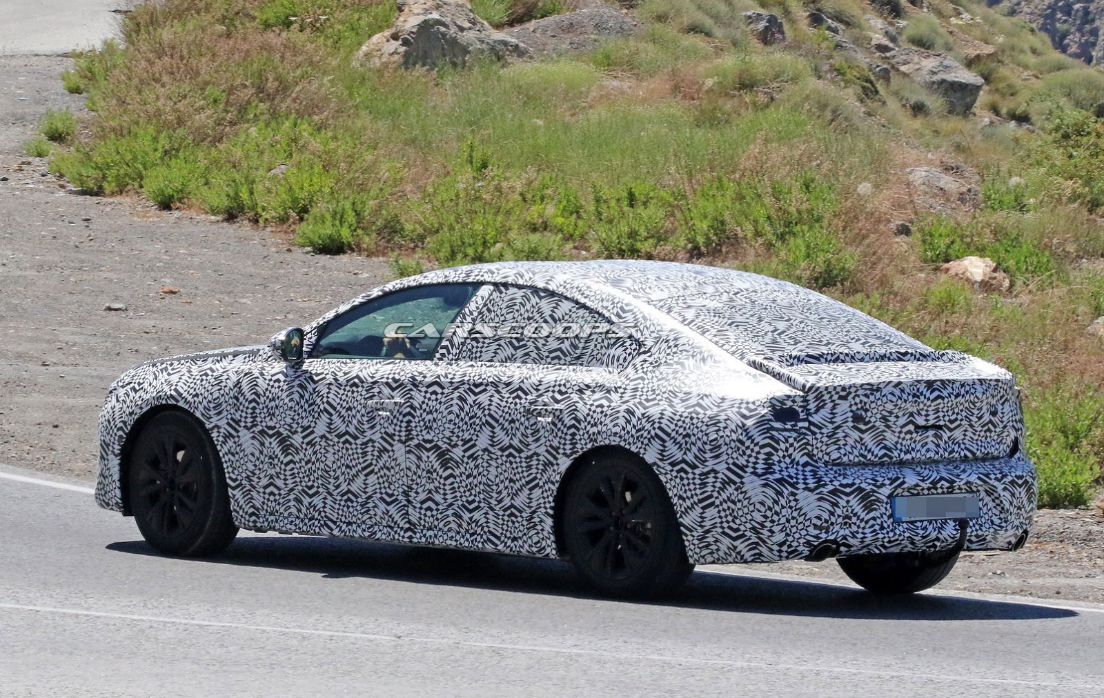 Despite recent reports stating that the new car would take some styling cues from the Instinct Concept, whatever is hidden underneath this camouflage looks a lot more like Peugeot’s Exalt four-door coupe concept to us.