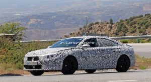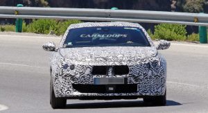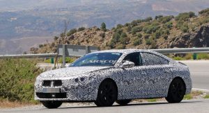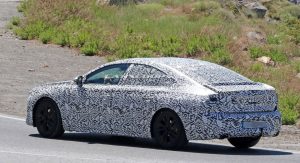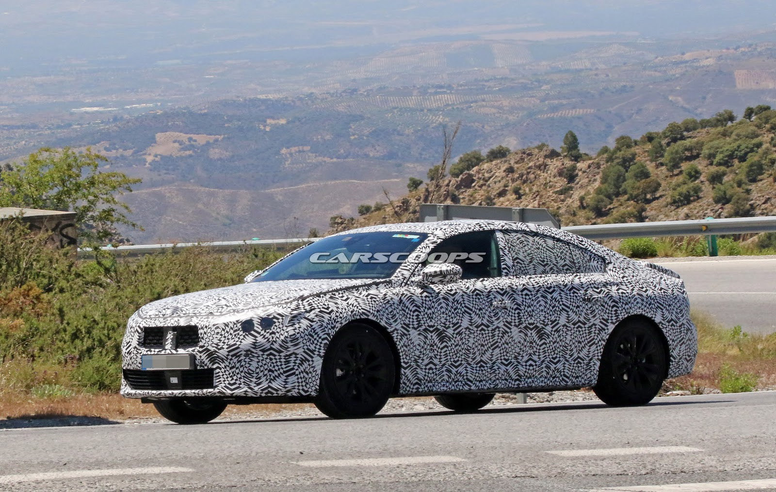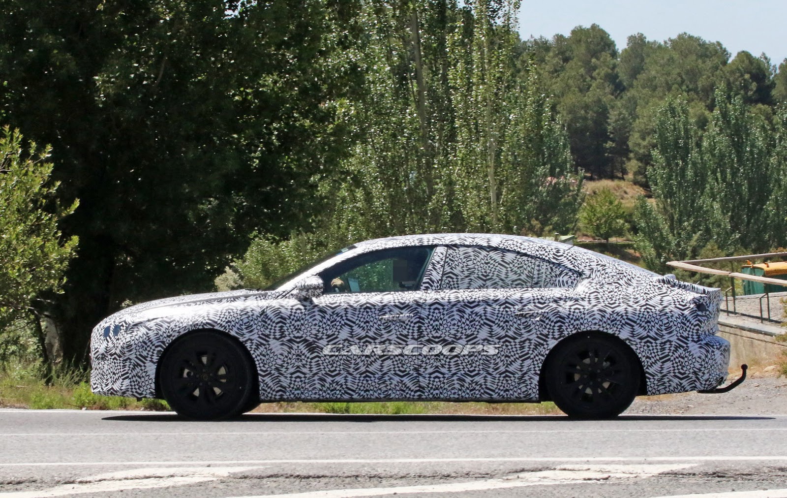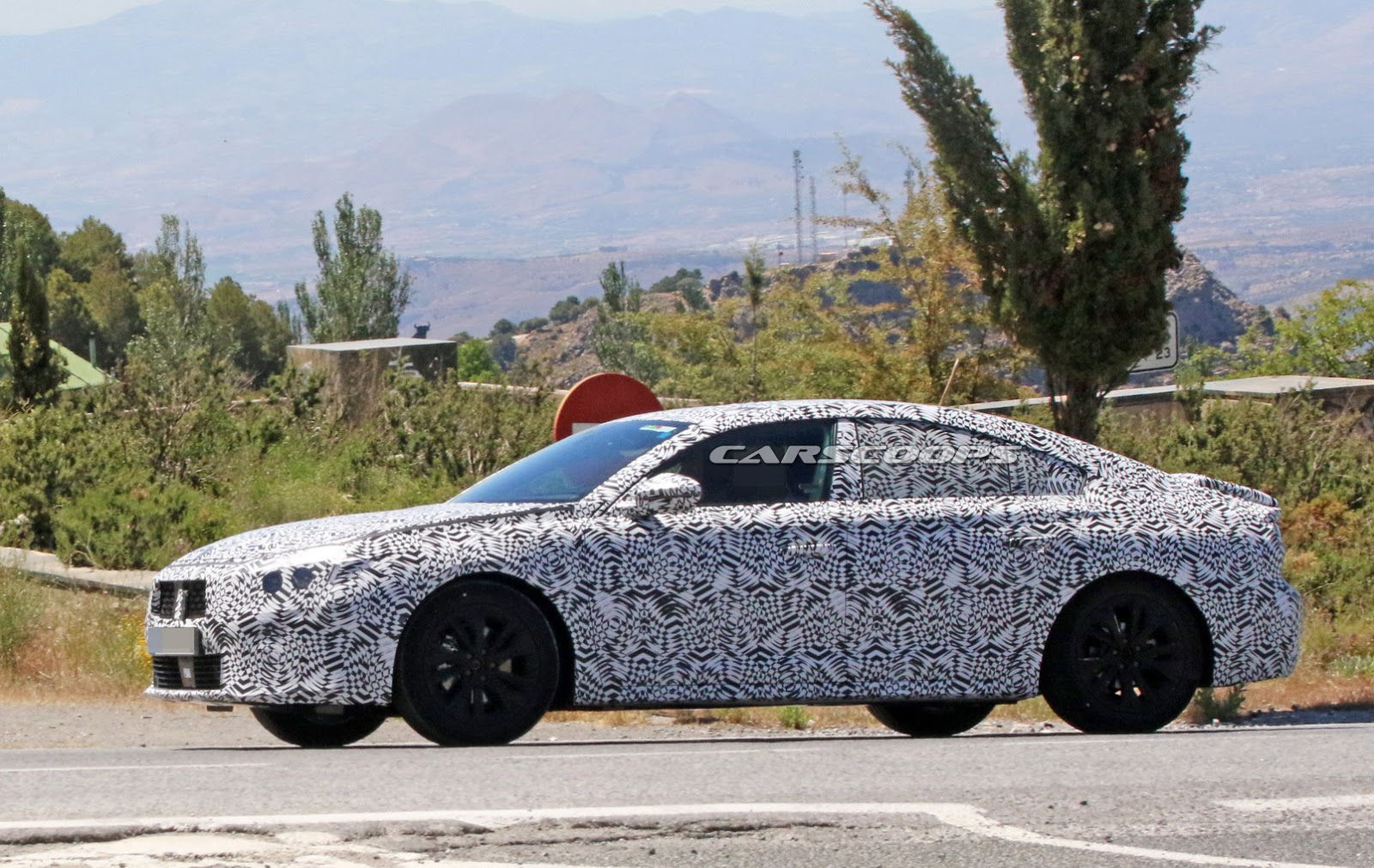 Despite recent reports stating that the new car would take some styling cues from the Instinct Concept, whatever is hidden underneath this camouflage looks a lot more like Peugeot’s Exalt four-door coupe concept to us.