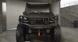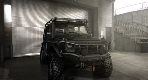 Penned by MoAoun in three different shades and with various upgrades, the meanest of them all wears a matte black paint and sports a large bulbar, off-road bumper with winch, flared wheel arches that make room for a set of chunky tires, additional LED lights, and a roof rack.
