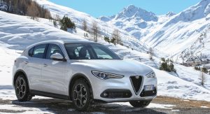UK customers will be offered two engine options at launch, including a 210hp 2.2-liter diesel and a 280hp 2.0-liter petrol unit, both of them paired with an eight-speed automatic and all-wheel drive as standard. Alfa Romeo claims that the 280hp petrol version of the Stelvio offers best-in-class acceleration, with 0-62mph (100 km/h) in 5.7 seconds and a 143mph (230 km/h) top speed. Fuel economy is rated at a combined 40.4mpg UK (7 liters/100km) and CO2 emissions set at 161g/km.