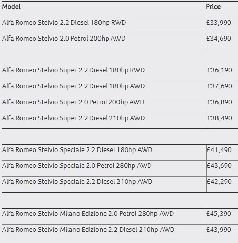 Alfa Romeo announced the range and pricing details of the new Stelvio SUV for the UK market.