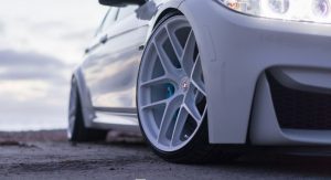Elsewhere, the car sits on a set of HRE R101 lightweight wheels measuring 20×10 up front and 20×12 at the rear and finished in gloss white. Putting white wheels on a white car isn’t done very often but in this case, it works surprisingly well, at least to our eyes.