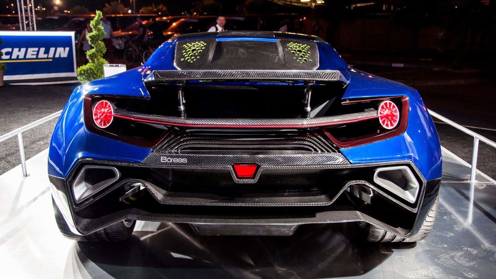 From a design standpoint, the Boreas is certainly attention-grabbing. It adopts a typical supercar shape and has a front end dominated by a steeply raked hood, McLaren-inspired carbon fiber air intakes and a curvaceous windscreen that flows uninterrupted into the roof. The intriguing design touches then continue at the rear with a carbon fiber wing, two taillights, a Bugatti Chiron style central LED strip and edgy tailpipes.