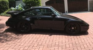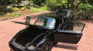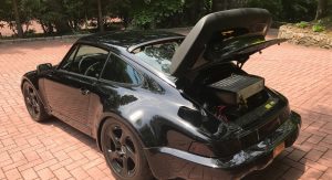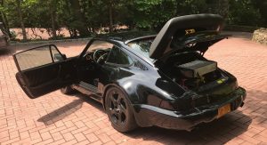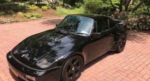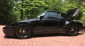 Not only does the car feature a slantnose conversion, it’s also got 964 bumpers and Euro-spec headlights. In other words, while the rear half of the car is easily recognizable as being from a 911, the front half kind of reminds us of the Porsche 944.