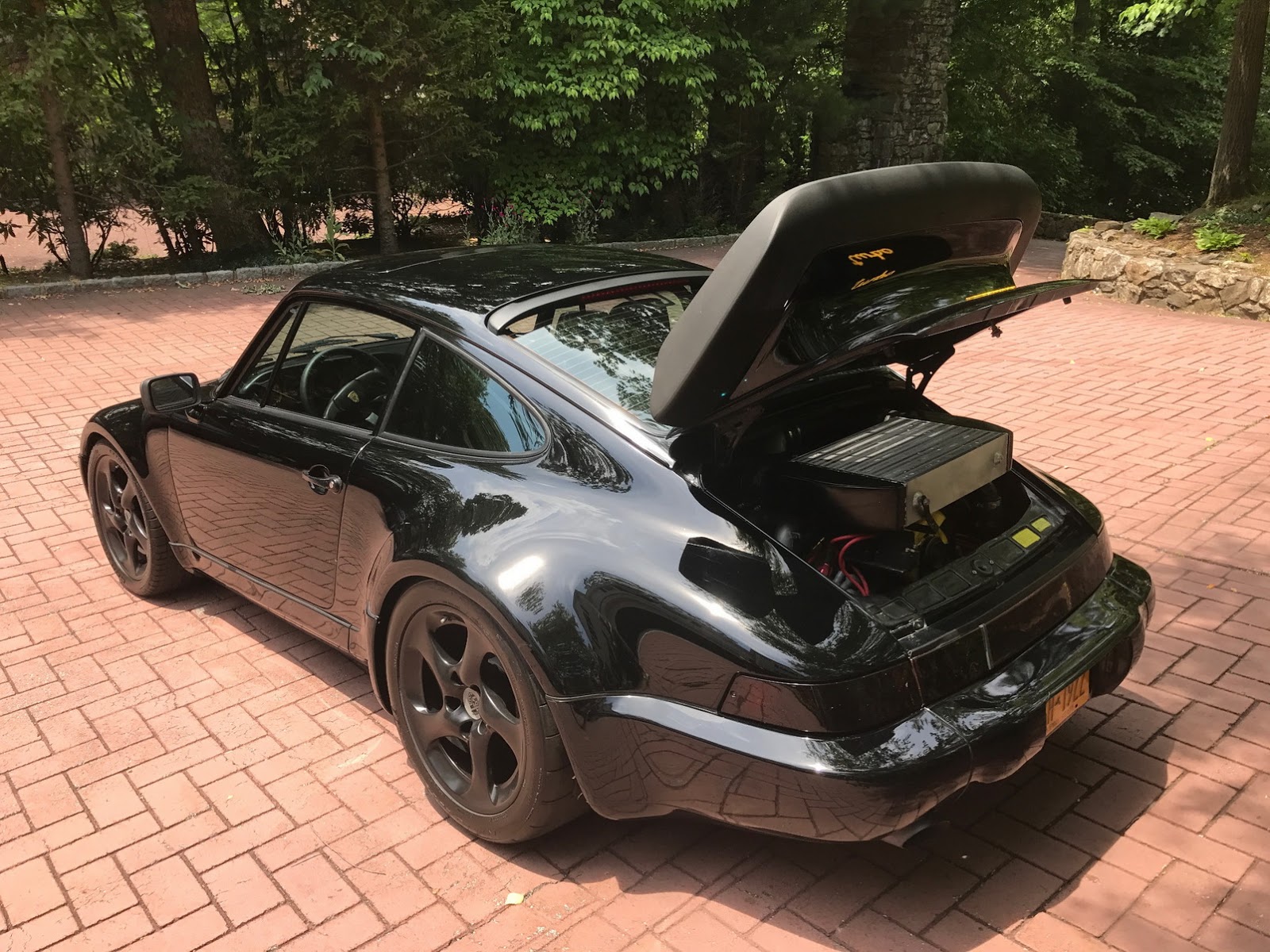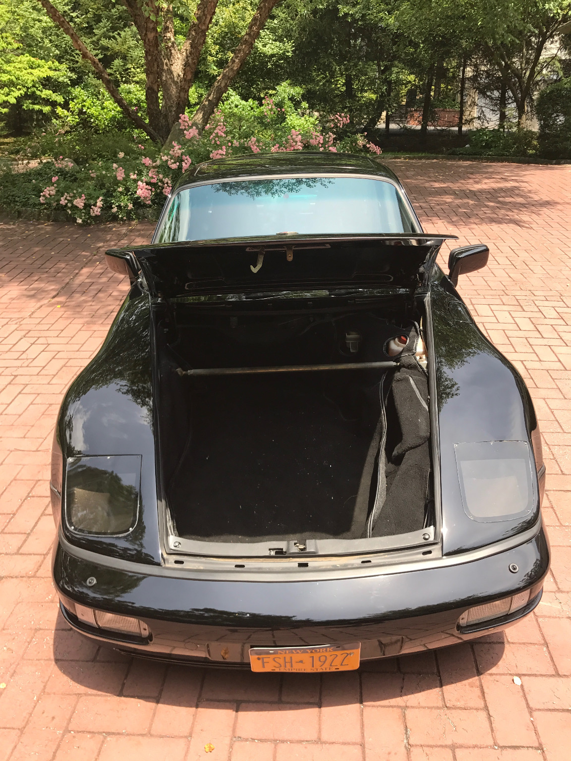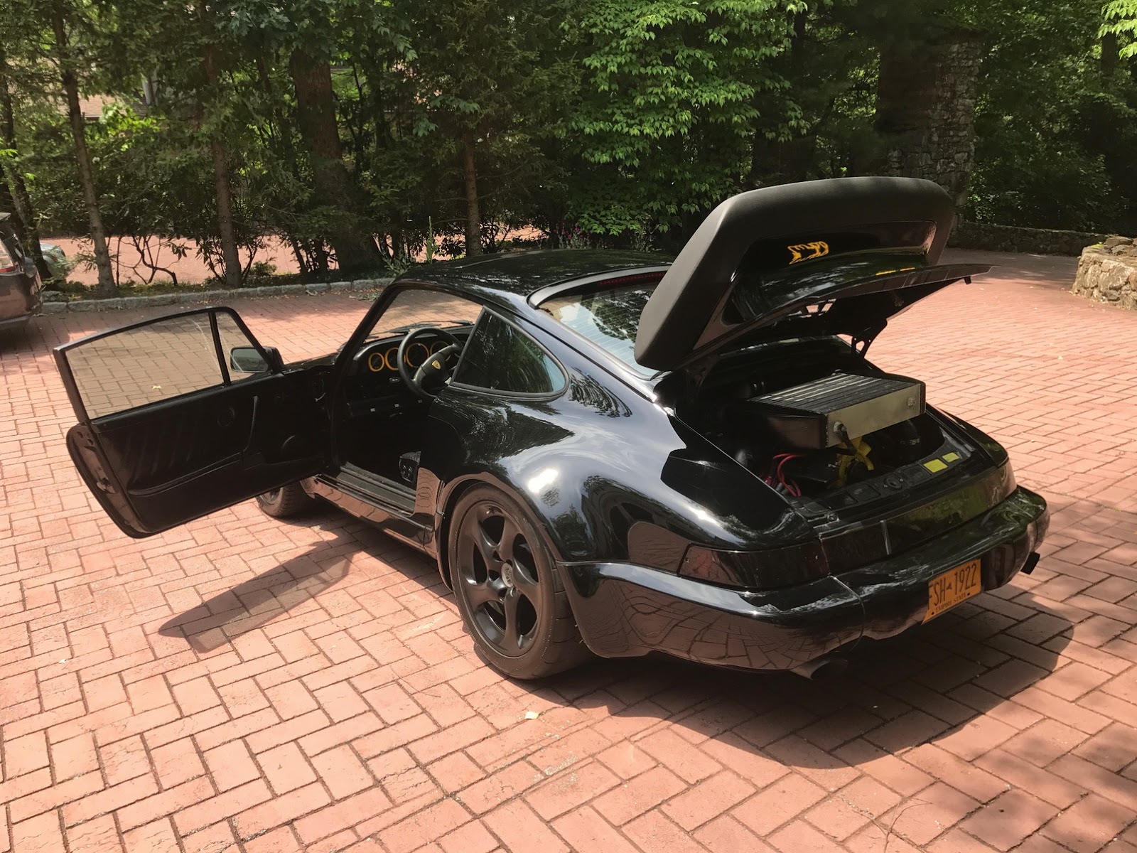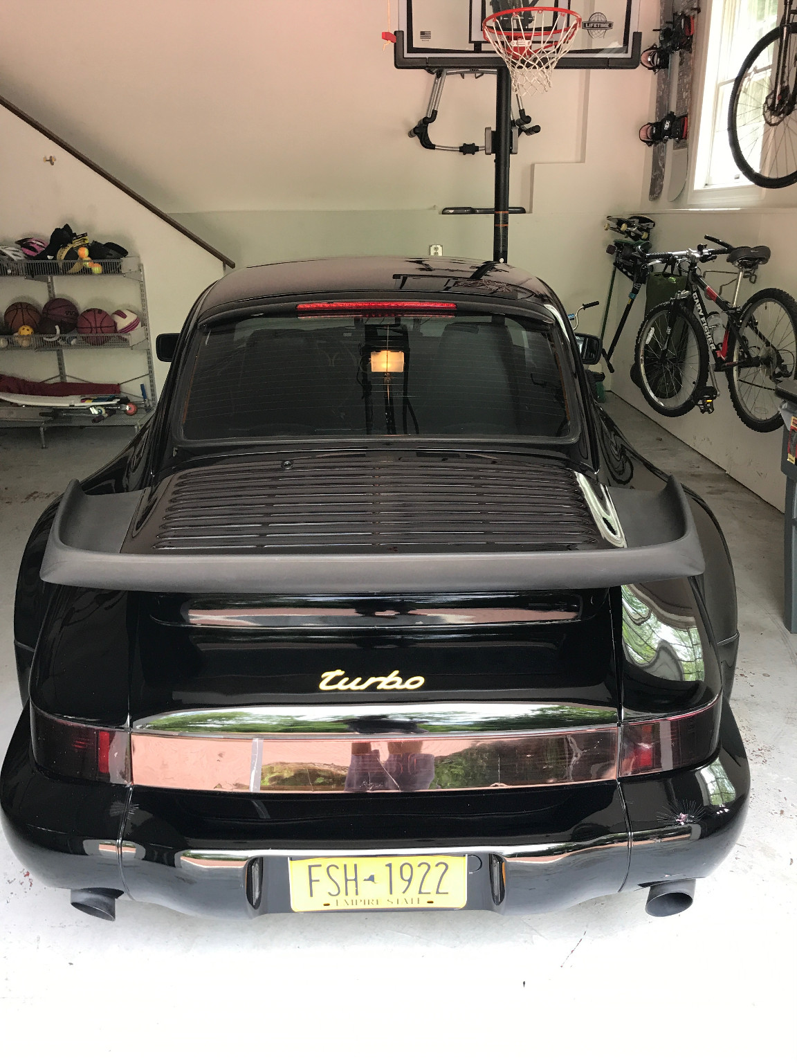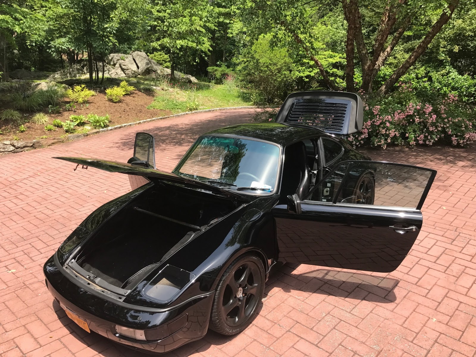 Not only does the car feature a slantnose conversion, it’s also got 964 bumpers and Euro-spec headlights. In other words, while the rear half of the car is easily recognizable as being from a 911, the front half kind of reminds us of the Porsche 944.