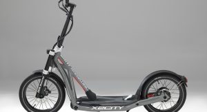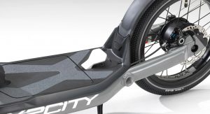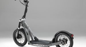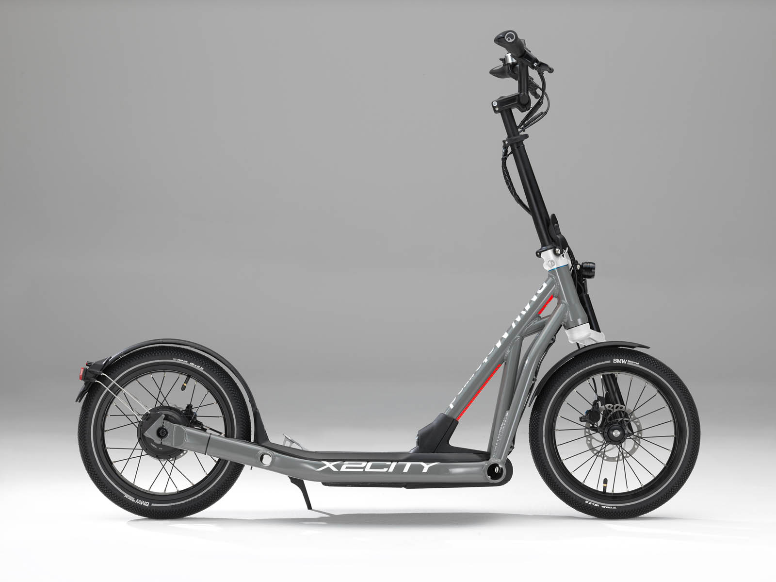Built and distributed in collaboration with bicycle manufacturer ZEG, the X2City packs a 408-Wh lithium-ion battery pack and a brushless hub motor for motivation that will send it traveling at speeds of up to 15 miles per hour, will travel a good 18 miles between charges, and takes about two and a half hours to charge from an ordinary household socket (by which we assume they mean the common 220-volt standard across Europe).