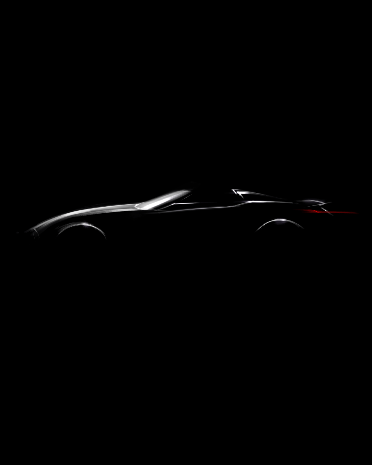The picture doesn’t reveal much but it shows the car will have a long hood, a rakish windscreen, and what appears to be two rollover hoops. We can also see prominent wheel arches, a rear spoiler, and slender taillights.