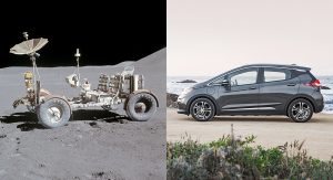 With that in mind, the present-day 2017 Chevrolet Bolt EV is all about making electric drive affordable for people who drive exclusively on this planet, costing considerably less than the $38 million Lunar Rover.