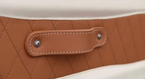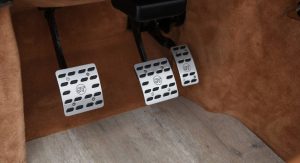 Inside, you’ve got the Startech leather sport steering wheel, gearshift levers, custom aluminum pedal pads and of course a full dual-tone leather interior that even features little blue edges where the white meets the brown on the upper dash, armrest, seats and door panels.