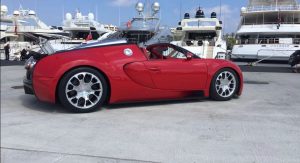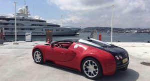 This particular example, pictured among the megayachts in Cannes, France, was the 40th made, and left the factory in December of 2009 painted in Black Blue Metallic. Its original owner sold it in 2014, and the new owner didn’t like the paintjob. So he had it resprayed, but not by just any old bodyshop. Instead of sent it back to the factory, where it was repainted in black and red, and issued with documentation attesting as such.