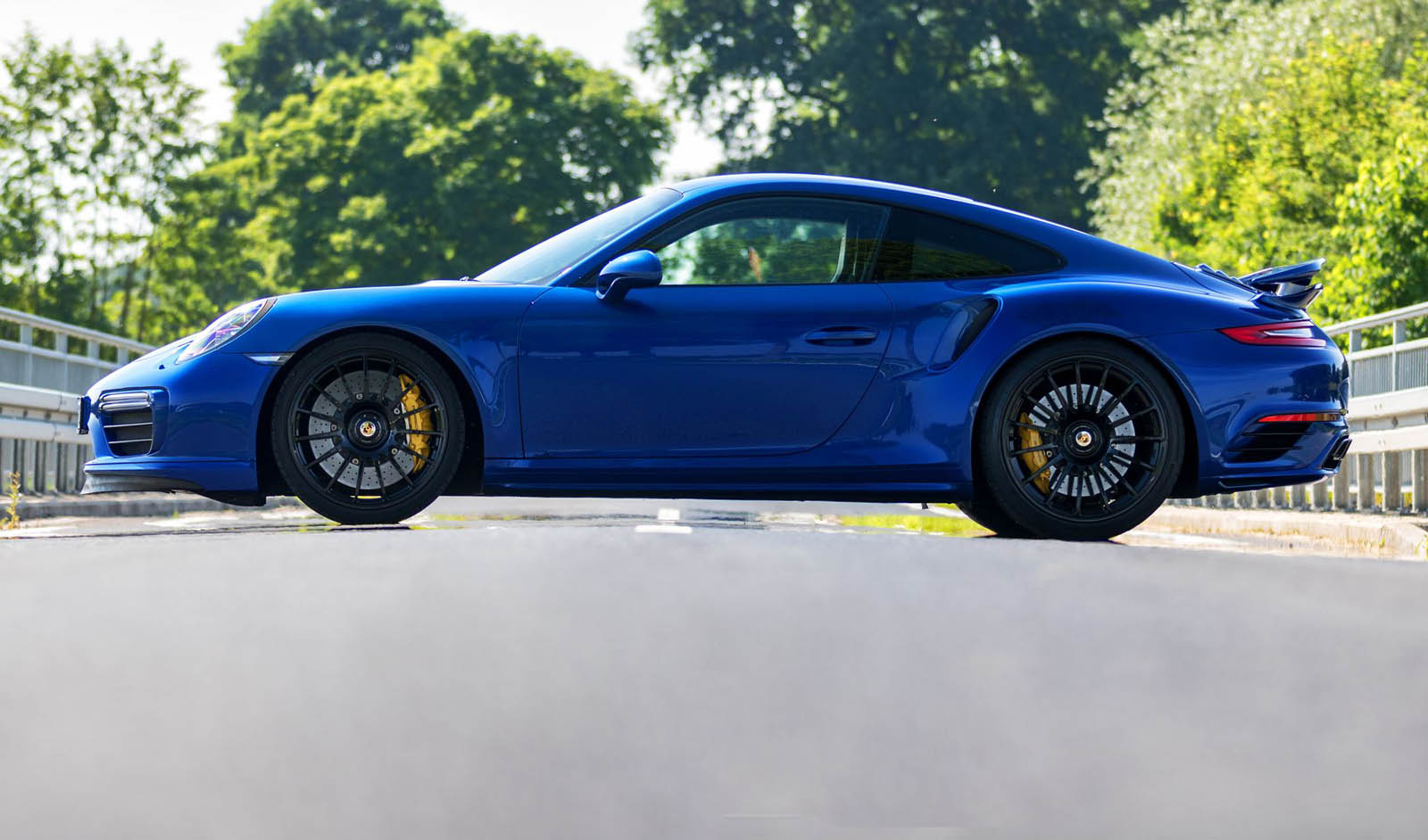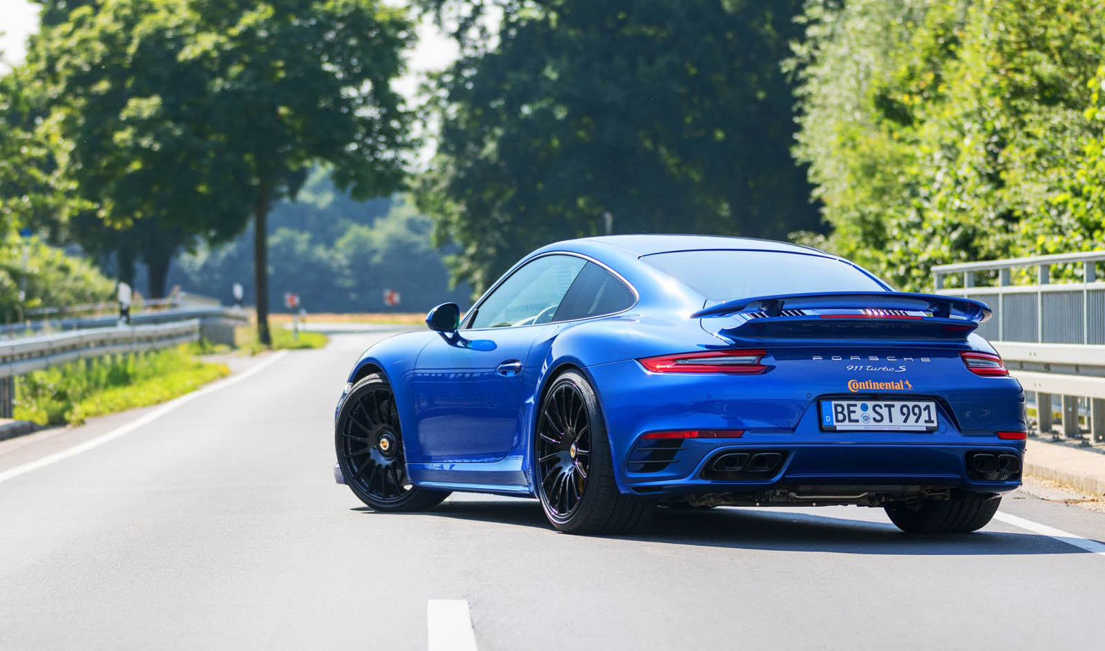 Say hello to the Blue Arrow, a 991.2 Turbo S that’s been dialed up even further. Instead of 580 hp, Edo’s version kicks out 675 brake horsepower. And that boost of nearly 100 horses does wonders.