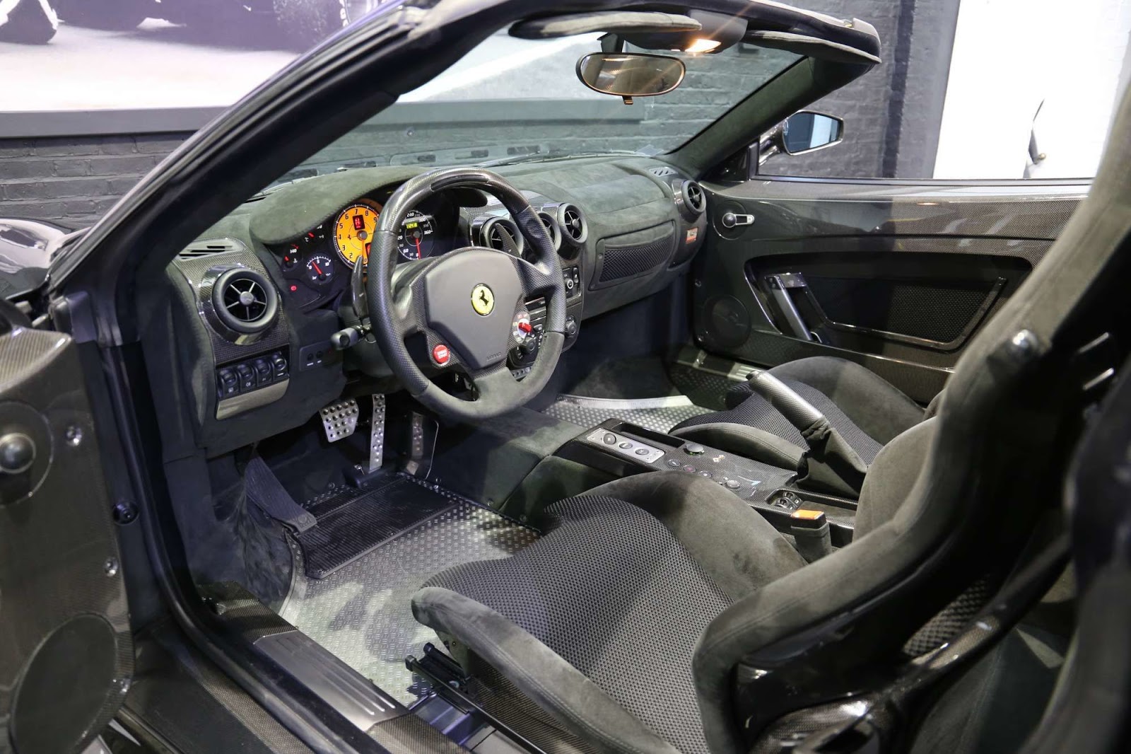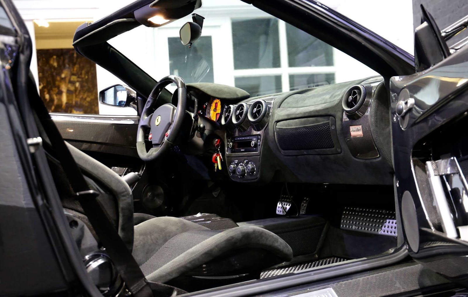This 16M is a 2009 example painted black and fitted with a protective film straight from Ferrari. It has 7,800 miles (12,553 km) on the clock and is said to be in immaculate condition. From the pictures, it looks as good as new and really stands out thanks to the yellow brake calipers.
