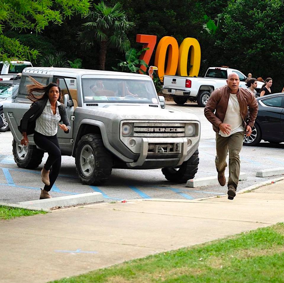 “The Ford Bronco seen in Dwayne Johnson’s upcoming movie, ‘Rampage,’ is the 2004 Bronco concept,” a spokeswoman said. “It does not represent the future Bronco beyond sharing the iconic Bronco name.”